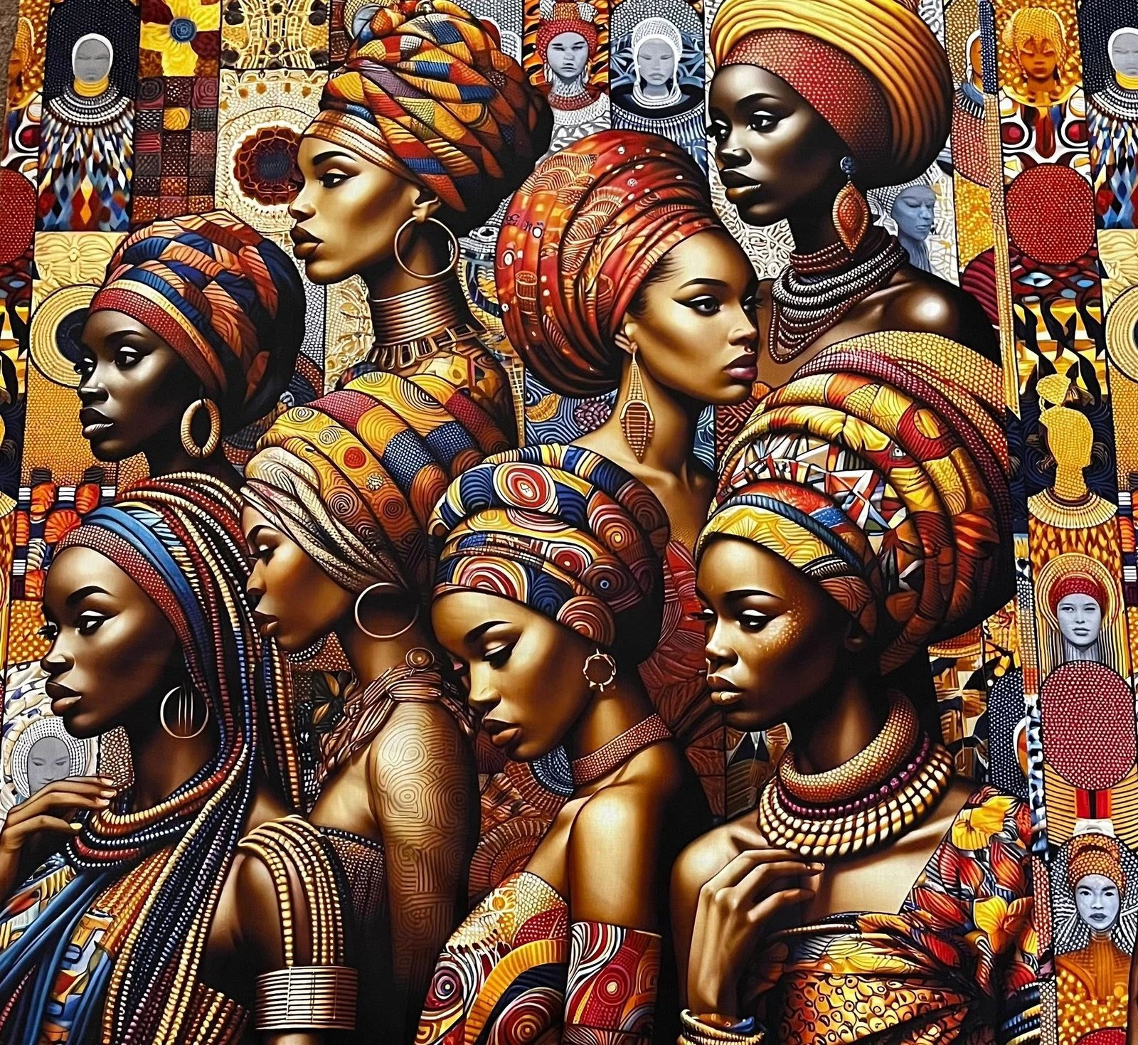 Bold Queens – 45×45″ Cotton African Portrait Panel