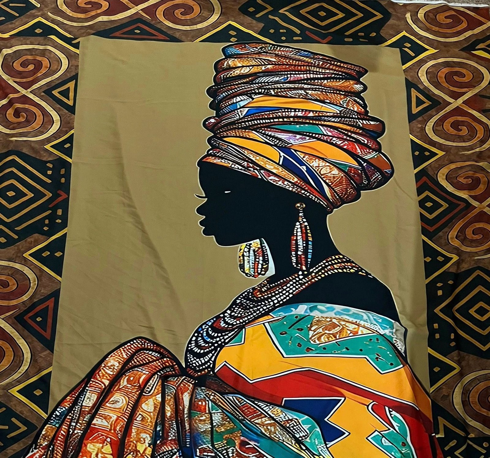 Elegant African Woman Silhouette Panel – Silky Satin Fabric (60 x 65 inches)