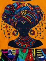 Infuse your next project with bold beauty and Afrocentric flair using our *Royal Silhouette & Abstract Vibes* cotton fabric. This stunning print features a regal black woman adorned in vibrant traditional jewelry and an intricate headwrap, set against a rich orange background. The bottom portion bursts with geometric wave patterns and tribal motifs in dazzling hues of red, blue, yellow, green, purple, and black ? perfect for creating striking statement pieces. Panel size is 30 by 60 inches, there are two silhouettes in one panel, each silhouette is 15 by 15 inches. Ideal for handbags, tote bags, apparel, quilts, accessories, and home d?cor.